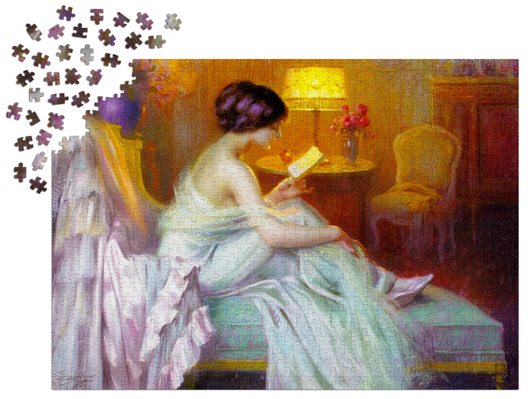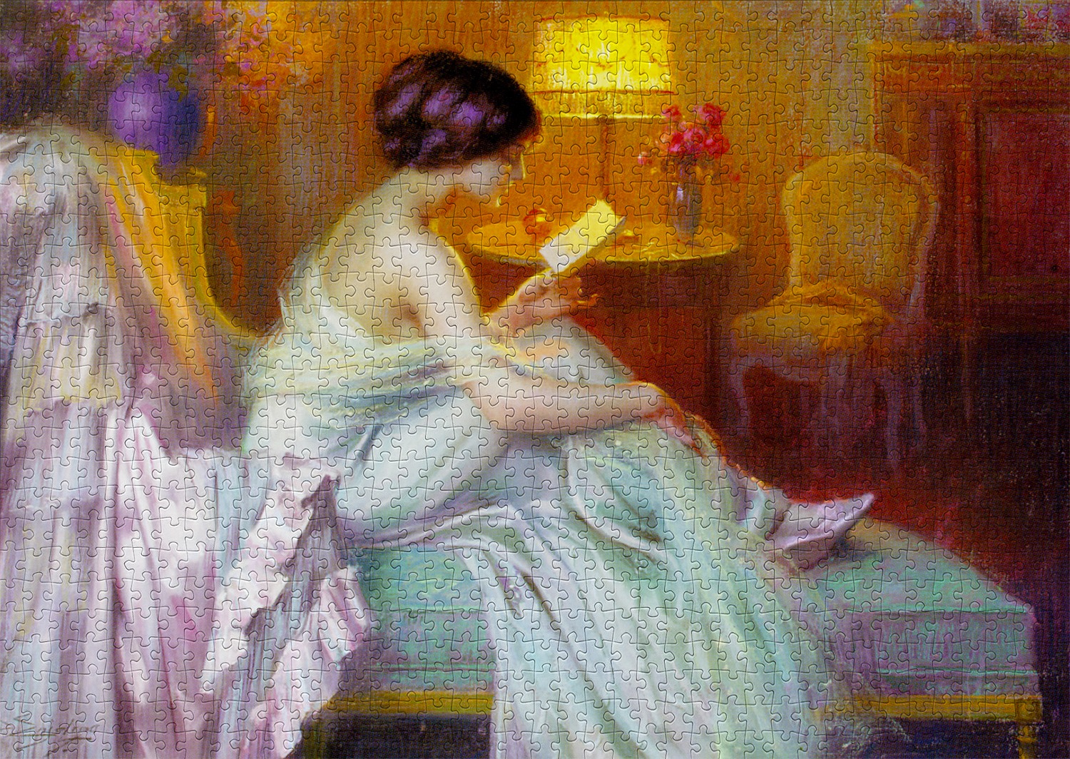 'Reading at Lamp Light'