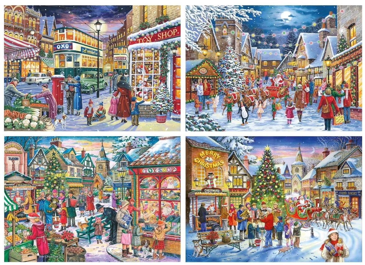 In deze doos zitten 4 puzzels van 500 Stukjes: