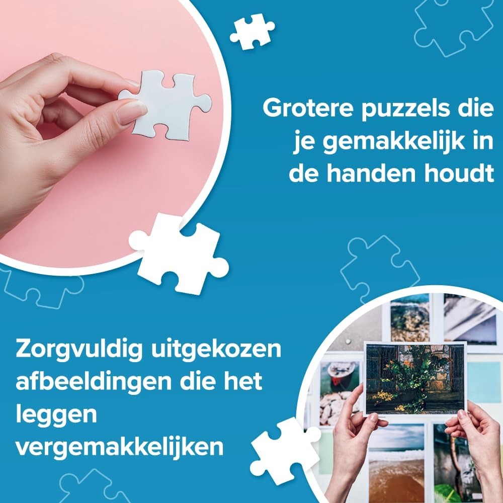 Deze puzzel heeft puzzelstukjes die 2 x zo groot zijn dan normaal.