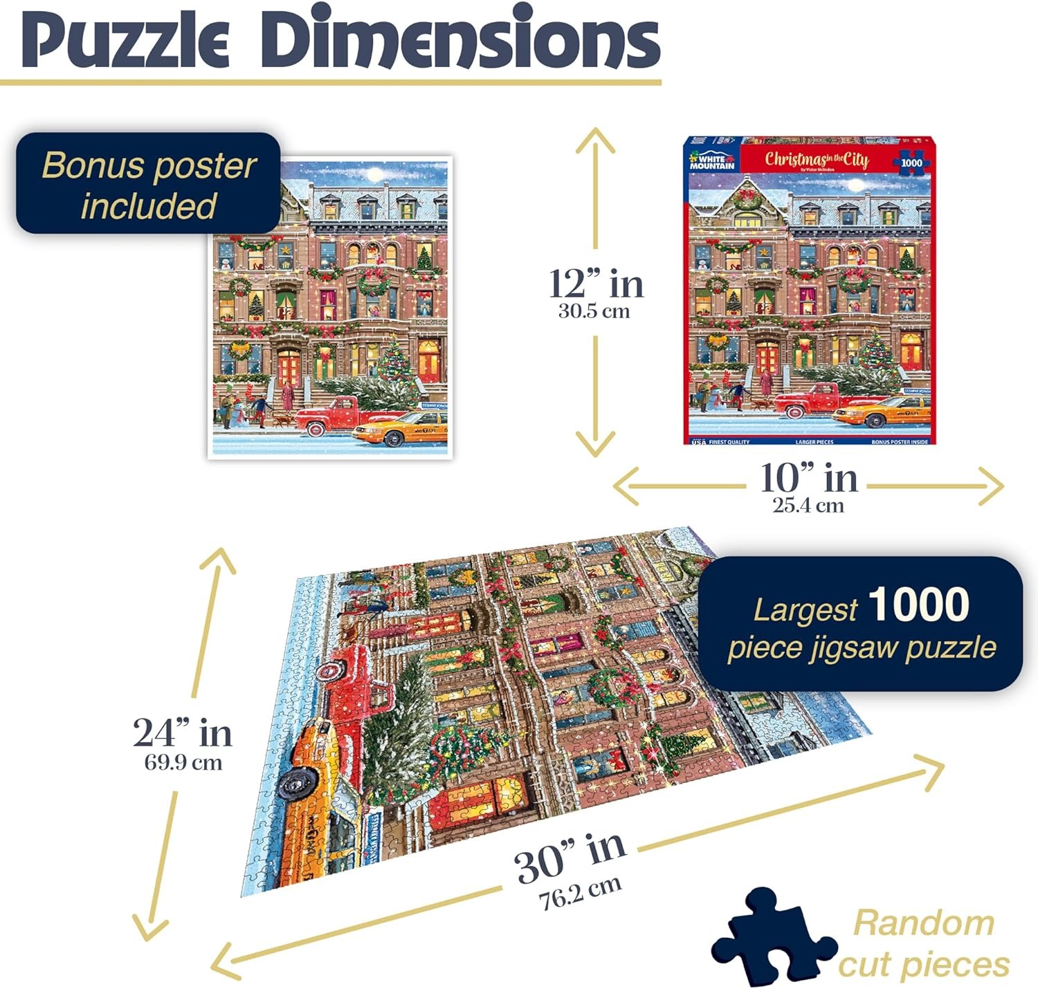 White Mountain is een Amerikaanse merk van uitstekende kwaliteit. De puzzelstukjes hebben een zeer goede dikte, zijn stevig en hebben een perfecte pasvorm. De kleuren zijn warm. De puzzelstukjes op zich zijn iets groter dan normaal, zie de afmeting van de puzzel. De puzzel wordt gelegd in rastervorm, met erg veel variatie in de puzzelstukjes zelf. Omdat de puzzelstukjes op zich variëren, is het altijd meteen duidelijk of een stukje past of niet.
